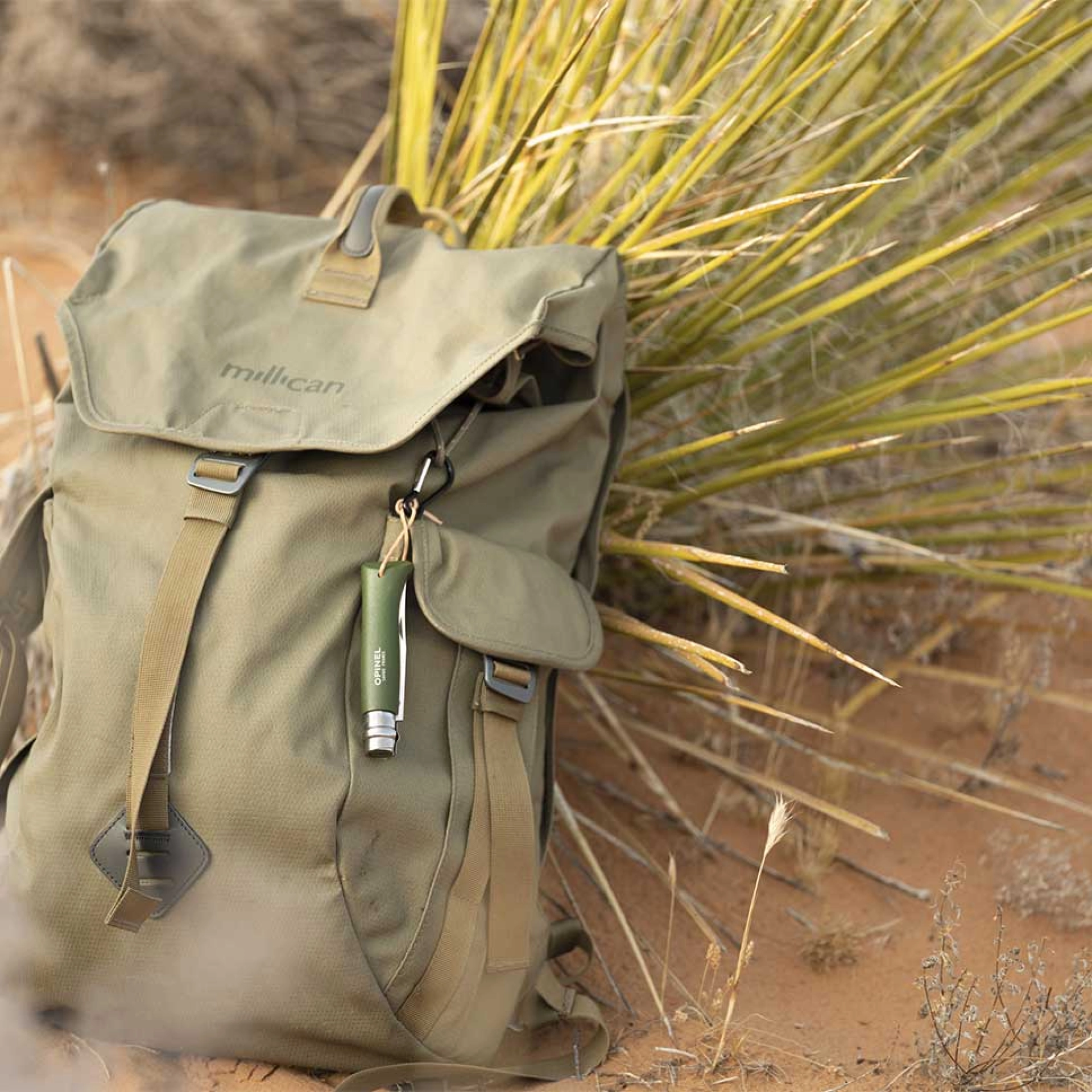 Oțelul inoxidabil utilizat la lamele OPINEL este o calitate optimizată pentru a garanta atât rezistență ridicată la coroziune, cât și performanță mecanică ridicată. Lama oferă o ascuțire excelentă și o rezistență ridicată la abraziune (uzură), ceea ce îi permite să reziste la contactul regulat cu materiale dure, cum ar fi ceramica, înainte de a necesita reascuțire. Oțelul inoxidabil are avantajul că nu necesită întreținere specială în condiții obișnuite de utilizare, spre deosebire de oțelul carbon. Cu toate acestea, își poate atinge limitele atunci când este pus în contact prelungit cu un mediu agresiv (acid, apă sărată, detergent...). Lama clasică Opinel a adoptat o formă Yatagan. Forma Yatagan este inspirată de o sabie tradițională turcească, cu vârful în sus. Lama este șlefuită până la un profil convex exclusiv, care asigură rezistența lamei și permite o rectificare eficientă.