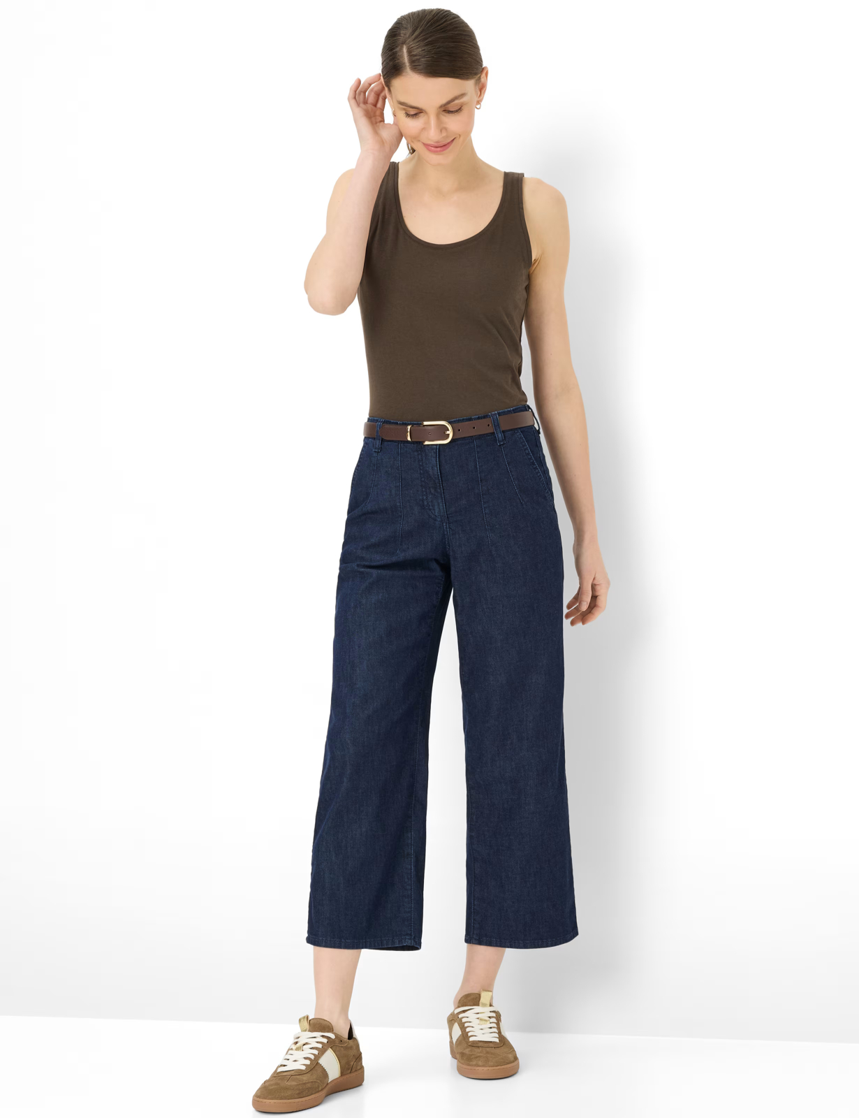 Aspect denim de vară: Pantalonii culotte în stil Maine S adaugă o notă elegantă ținutei tale și impresionează prin stilul lor natural. Feminini și relaxați, acești blugi pentru femei sunt definiți de silueta generoasă a piciorului lat, cu talie normală și o cusătură interioară scurtă și la modă. Buzunarele franțuzești discret integrate și buzunarele cu refileți completează elegant designul. Aspectul casual al acestor pantaloni pentru femei este obținut prin cusături frontale impresionante și detalii subtile de aspect distressed, care accentuează caracterul autentic al denimului. Un amestec de bumbac de înaltă calitate asigură un confort excepțional, combinând senzația naturală a bumbacului cu proprietățile de menținere a formei și elasticitate ale fibrelor moderne de performanță. Fiind un denim ultraușor, impresionează prin greutatea sa excepțional de ușoară - perfectă pentru lunile mai calde. Acest confort este sporit și mai mult de tehnologia inovatoare Coolmax, care este respirabilă, elimină umezeala de pe corp și lasă un efect plăcut de răcorire asupra pielii. Acești pantaloni inovatori combină astfel o senzație de greutate redusă cu un design modern.