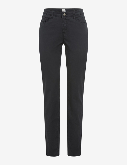 Cu aspectul lor curat și modern, pantalonii cu cinci buzunare în stil MARY sunt o alegere feminină pentru o purtare versatilă de zi cu zi. Croiul drept, cu o croială standard, creează o siluetă echilibrată, care este flatantă și oferă o libertate amplă de mișcare. Elementele tipice cu cinci buzunare - buzunare frontale, un buzunar mic pentru monede și buzunare aplicate la spate - conferă pantalonilor aspectul lor distinctiv. Strasurile plasate subtil adaugă o notă elegantă designului curat. Materialul emană, de asemenea, lux. Calitatea superioară a bumbacului conferă pantalonilor un luciu subtil și o senzație netedă. Amestecul de bumbac de înaltă calitate asigură o senzație plăcută de moale pe piele. Completat de lyocell și elastan, țesătura satinată vibrantă oferă respirabilitate, menținerea formei și o libertate excelentă de mișcare - pentru un confort fără griji pe tot parcursul zilei.