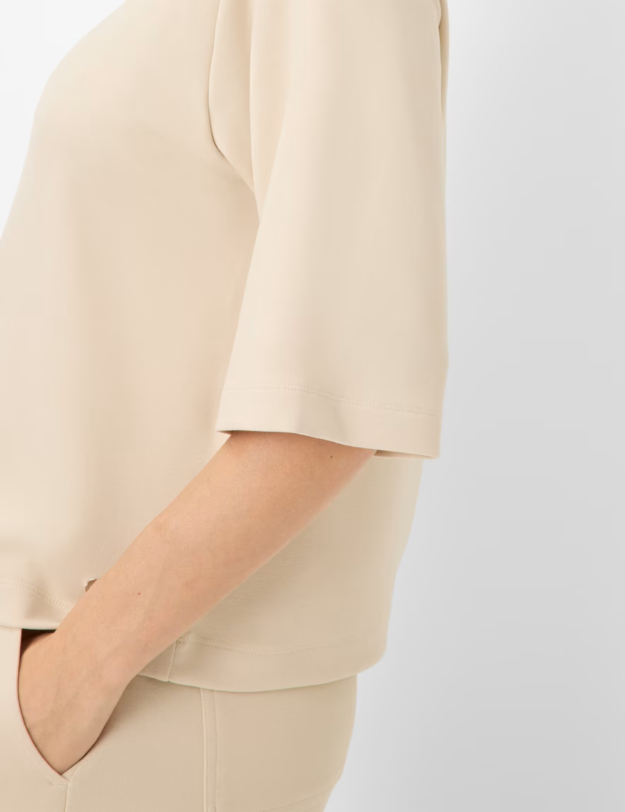 Perfectă pentru sezoanele de toamnă și iarnă, hanoracul în stil BERTA impresionează printr-un guler înalt sofisticat și o siluetă modernă. Umerii relaxați, talia lejeră și mânecile largi creează un aspect armonios. Benzile decorative subtile de la guler adaugă accente elegante și subliniază designul de înaltă calitate. Fabricată din jersey premium, această bluză oferă o senzație incomparabil de moale și un aspect elegant. Amestecul de viscoză, poliester și elastan asigură o senzație netedă, o menținere excepțională a formei și o elasticitate confortabilă care se mișcă odată cu tine. Viscoza conferă țesăturii un luciu natural, mătăsos, în timp ce conținutul de poliester garantează durabilitate. O notă de elastan completează perfect materialul și oferă un confort suplimentar. Material: 70% viscoză, 25% poliester, 5% elastan