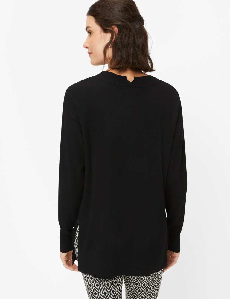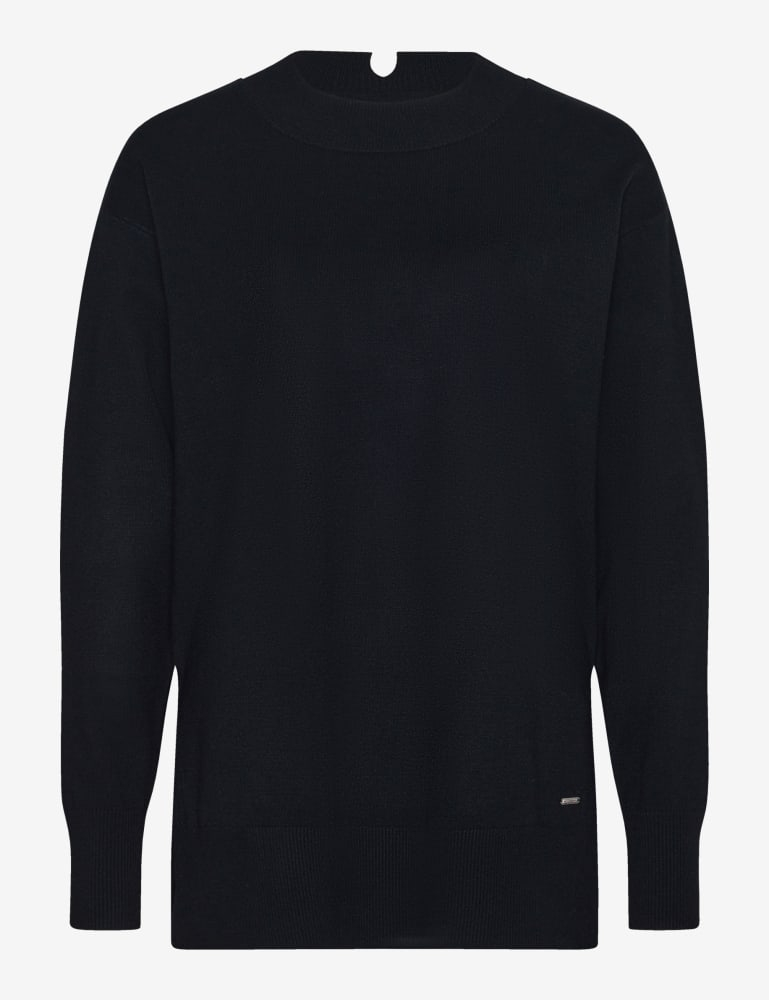 Cu un șic sofisticat, puloverul tricotat în stil LEA reinterpretează aspectul feminin al lunilor mai răcoroase. Silueta dreaptă și relaxată, cu mâneci raglan, se întâlnește cu un guler înalt modern și este deosebit de atrăgătoare datorită modelului împletit artistic încorporat pe față și a detaliilor complexe. Materialul moale din viscoza conferă puloverului pentru femei o senzație confortabilă, completată de poliamidă pentru menținerea formei. Puloverul are un aspect deosebit de elegant și impresionează prin senzația sa voluminoasă și moale - perfect pentru a combina elegant stilul individual cu confortul pe vreme rece.