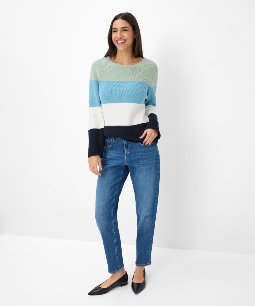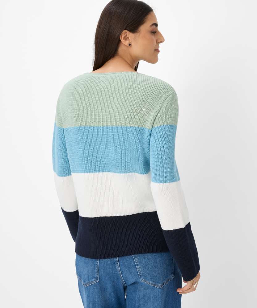 Puloverul tricotat în stil LESLEY demonstrează cât de modernă și atemporală poate fi moda feminină, captivând de la prima vedere prin aspectul său feminin și curat. Liniile clasice, cu mâneci lungi și un decolteu ușor rotunjit, creează un aspect elegant și fără efort, potrivit atât pentru purtarea de zi cu zi, cât și pentru ocazii speciale. Croiul flatează silueta frumos, în timp ce textura fină conferă puloverului o senzație intrigantă și o vibranță subtilă. Această estetică se armonizează perfect cu construcția de înaltă calitate, din bumbac pur, care asigură o senzație naturală, respirabilă și este delicată cu pielea. Combinat cu tricotajul caracteristic, acest top pentru femei oferă un finisaj deosebit de moale, dar durabil, îmbinând cu măiestrie stilul casual cu un gust sofisticat.