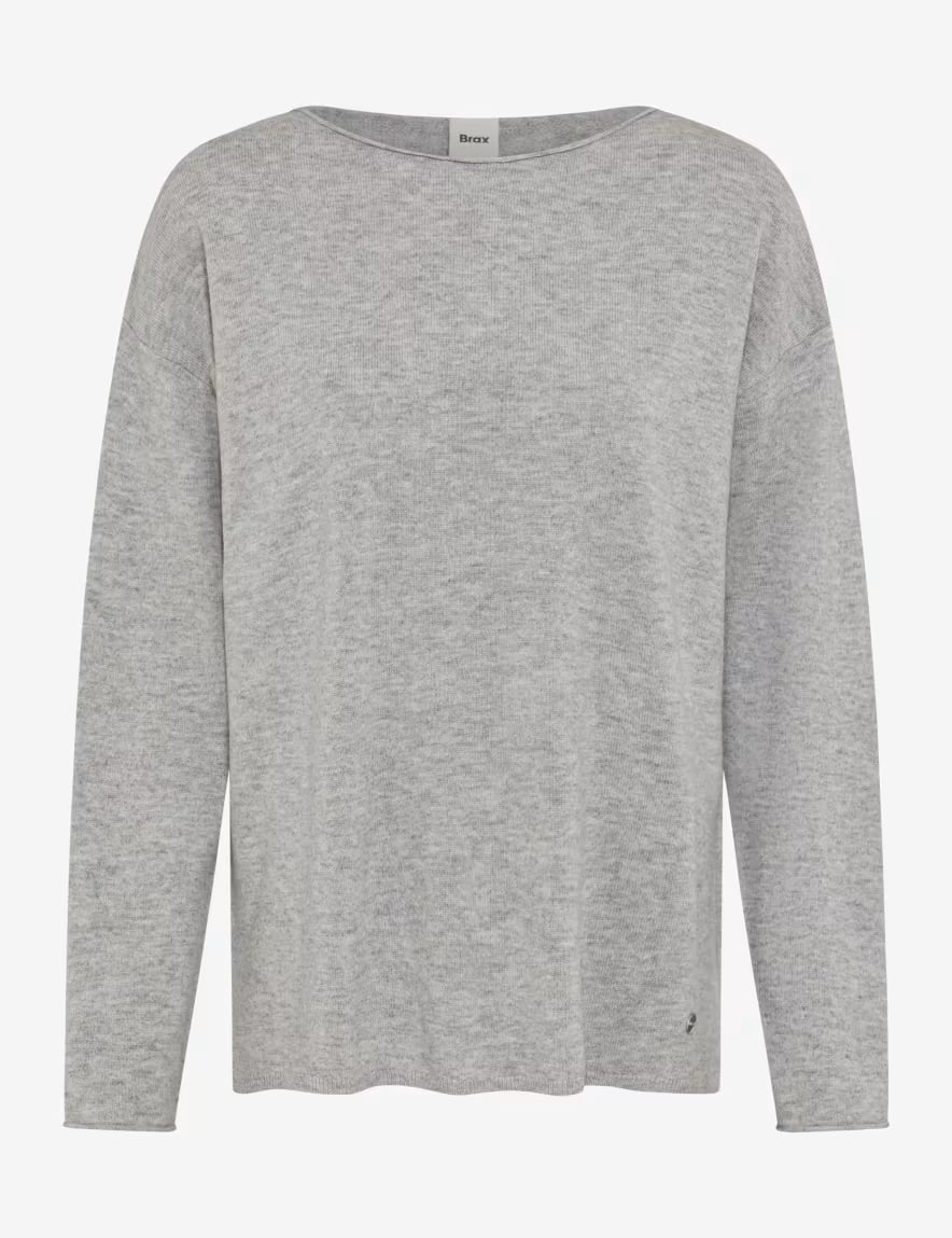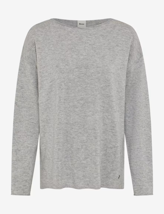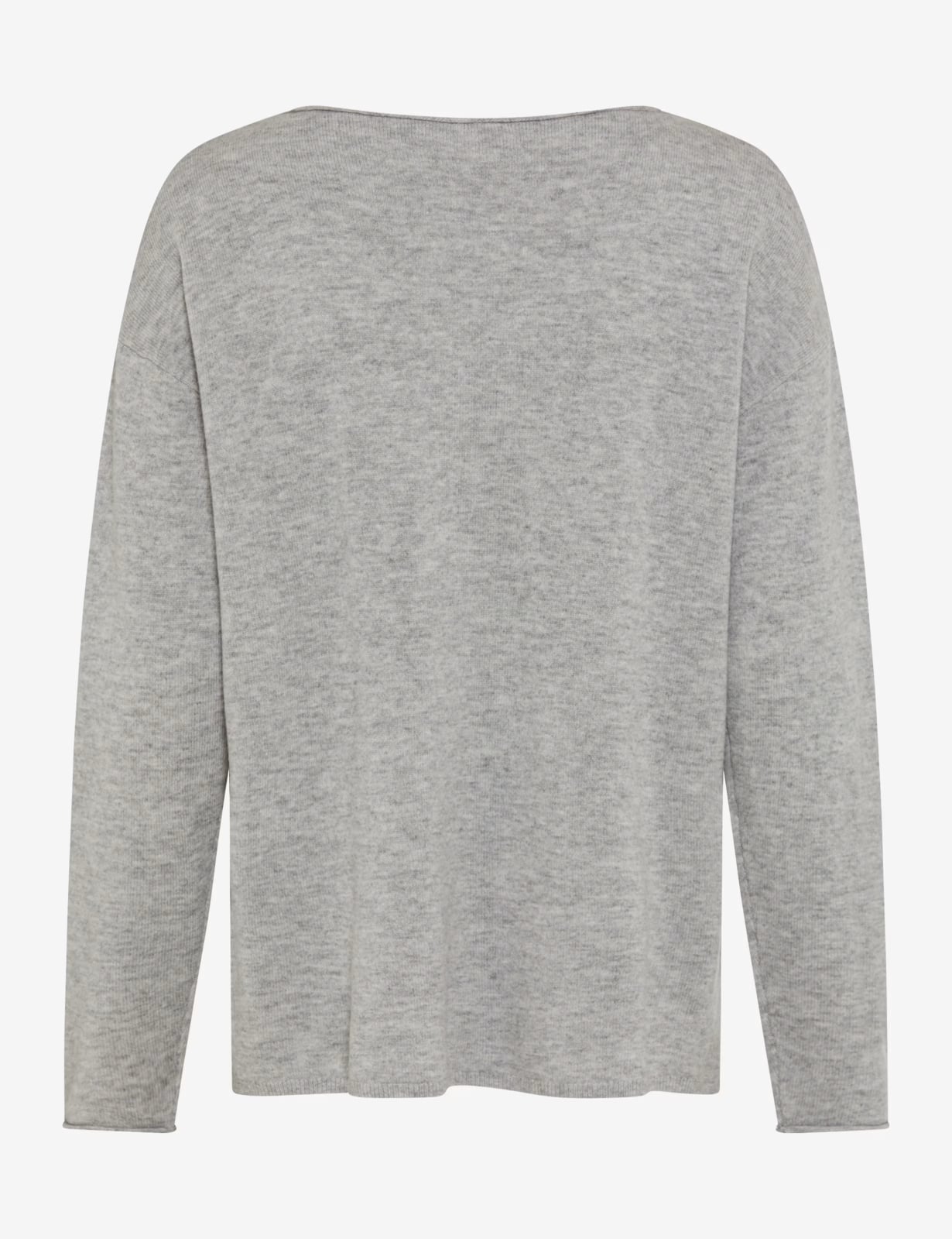 Eleganța întâlnește confortul – puloverul tricotat în stil LIZ va deveni un accesoriu indispensabil în garderoba ta de toamnă. Cu decolteul său sofisticat, tip barcă, și silueta relaxată, accentuate de umerii căzuți și un tiv rotunjit și mai lung la spate, această piesă combină feminitatea atemporală cu lejeritatea modernă. Detaliile fine, precum marginile subtile rulate la guler și crăpăturile mici la tiv, conferă designului o notă exclusivă și îl fac să atragă cu adevărat atenția. Confecționat din jersey single luxos, puloverul impresionează nu doar prin aspectul său, ci și prin materialul său de înaltă calitate. Amestecul luxos de merinos-cașmir, format din lână virgină moale și cel mai fin cașmir, asigură o senzație de neegalat și oferă căldură confortabilă în zilele reci. În timp ce lâna virgină impresionează prin respirabilitatea și elasticitatea sa, conținutul de cașmir răsfață cu moliciunea și eleganța sa inconfundabilă.
