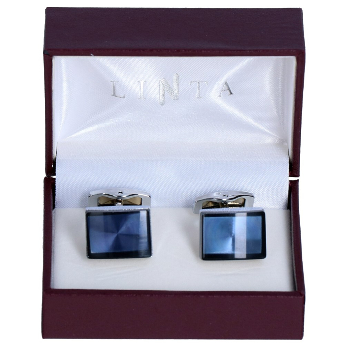 LINTA Butoni camasa barbati LINTA argintiu albastru dreptunghi