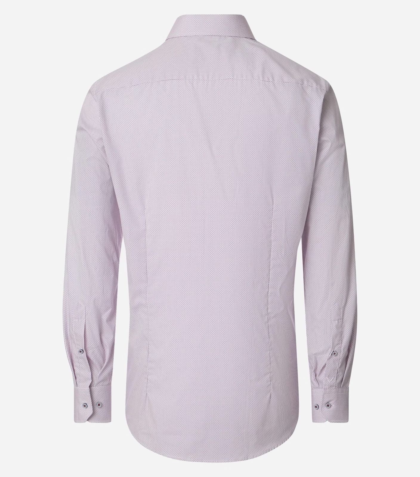 Această cămașă business prezintă un imprimeu modern care arată deosebit de elegant datorită tehnicii speciale de imprimare aplicate pe suprafața materialului. Fabricată din bumbac pur, oferă un confort excepțional, chiar și în zilele lungi. Croiala modernă și slim asigură un aspect elegant, permițând în același timp o libertate amplă de mișcare. Gulerul clasic Kent adaugă o notă elegantă și face cămașa suficient de versatilă pentru a fi asortată cu un sacou sau pantaloni eleganți. Această cămașă este o alegere solidă pentru întâlniri de afaceri sau întâlniri, combinând atât funcționalitatea, cât și designul contemporan.