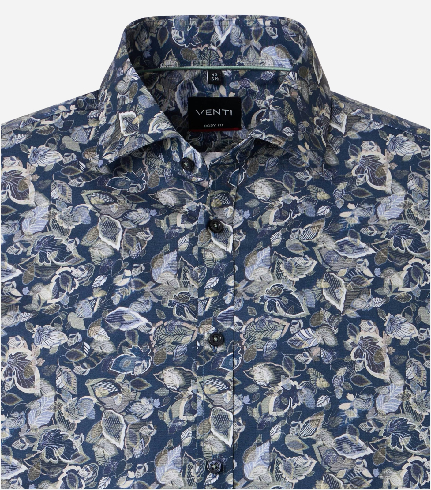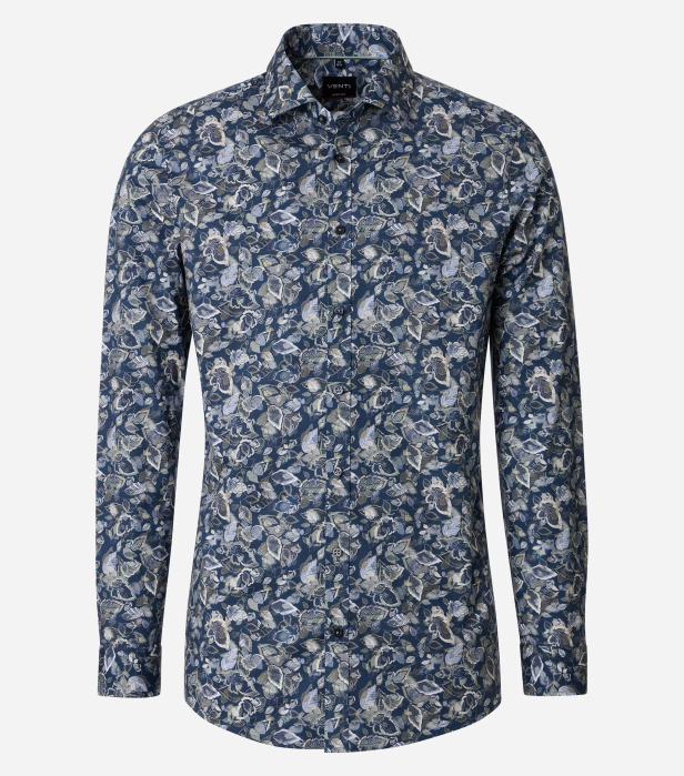 VENTI Camasa bumbac barbati VENTI BodyFit albastru print frunze