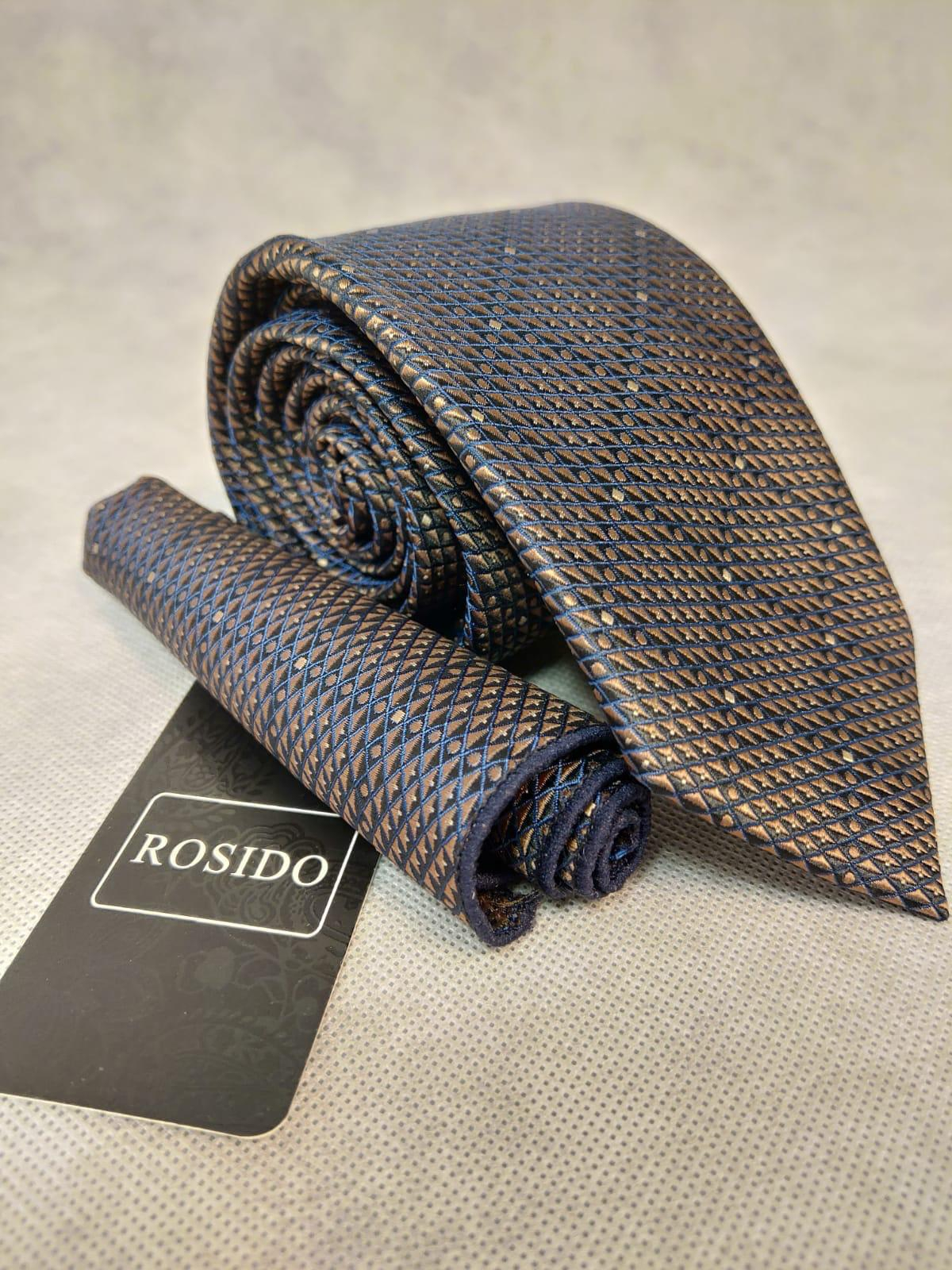 ROSIDO Set cadou cravata si batista barbati romburi auriu/bleumarin