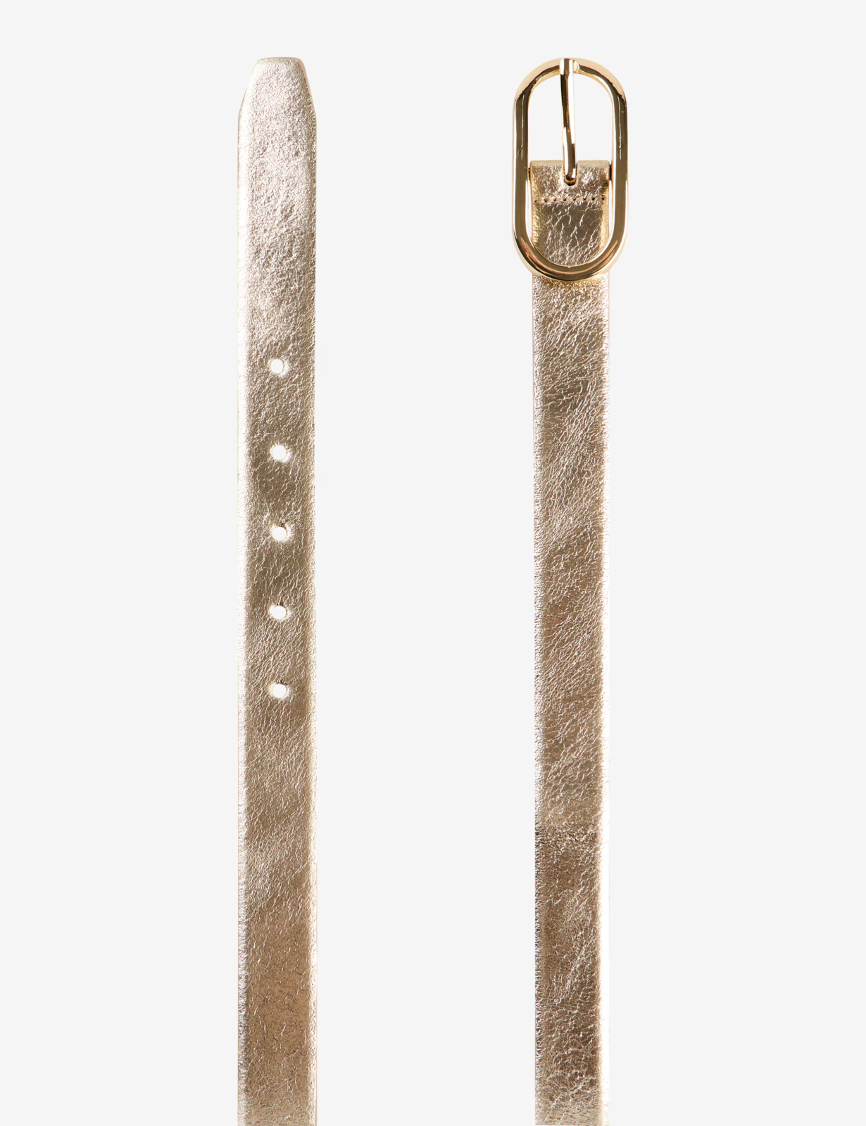 Accentele strălucitoare și designul minimalist fac din această curea extravagantă pentru femei un accesoriu modern obligatoriu. Silueta subțire se potrivește cu o cataramă metalică simplă care completează elegant finisajul metalic strălucitor. Fie că este aurie sau argintie, aspectul este atât elegant, cât și încrezător, ideal ca accent atrăgător pentru ținute curate. Suprafața metalică pune în valoare materialul: Fabricată din piele de înaltă calitate, cureaua impresionează prin senzația plăcută și durabilitatea sa - un accesoriu cu aspect modern.