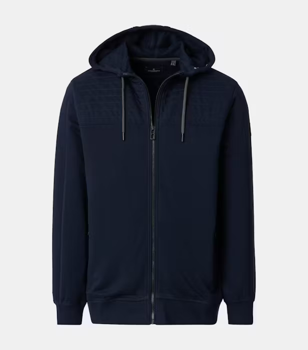 Această bluză cu glugă oferă un confort excepțional și un design clasic, ușor de aranjat. Materialul elastic permite libertatea de mișcare - perfect pentru plimbări, călătorii sau relaxare acasă. Buzunarele laterale cu fermoar îți păstrează lucrurile esențiale în siguranță. Gluga confortabilă protejează împotriva vântului și a intemperiilor, în timp ce un logo subtil pe mânecă adaugă o notă elegantă. Este perfectă cu un tricou și blugi pentru un look relaxat sau purtată peste pantaloni și o jachetă pentru un stil elegant și modern. Această jachetă impresionează prin calitatea și durabilitatea sa confortabilă.