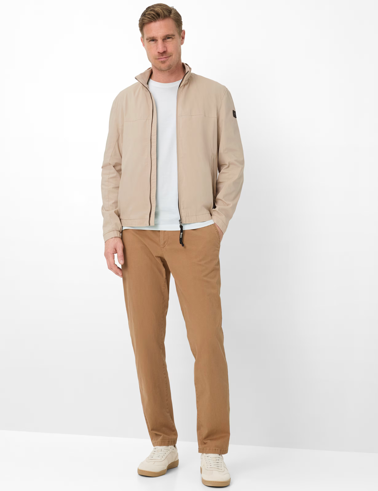Bluzonul în stil Calvin este un element de atracție estivală și casual pentru lunile mai calde. Această jachetă scurtă impresionează prin aspectul său masculin și o croială contemporană, dreaptă, care garantează o siluetă relaxată. Un guler înalt atrăgător, cu o inserție fină tricotată, adaugă un accent elegant, completat de un fermoar practic pentru o închidere ușoară. Designul funcțional este îmbunătățit și mai mult de buzunare sigure cu fermoar și buzunare interioare utile, care oferă spațiu amplu pentru obiecte personale, fără a compromite aspectul curat. Designul atent se transformă perfect într-o senzație excepțională, deoarece amestecul de bumbac folosit este plăcut la atingere și oferă un confort superior datorită căptușelii integrale. Ceea ce diferențiază cu adevărat această jachetă bărbătească este însă calitatea sa ultraușoară. Construcția inovatoare asigură o greutate extrem de redusă, cu performanțe maxime. Rezultatul este o jachetă bărbătească aerisită și ușoară, care, în ciuda ușurinței sale, rămâne robustă și completează ținuta fără efort și stil.