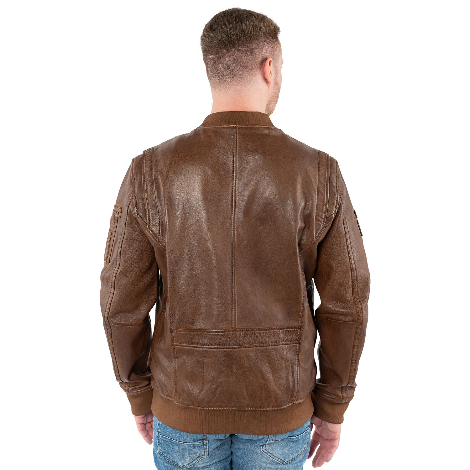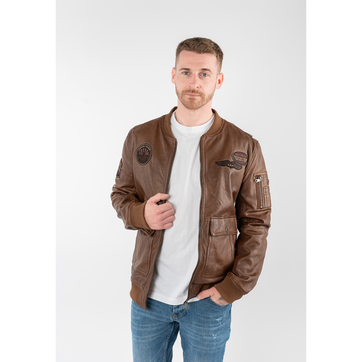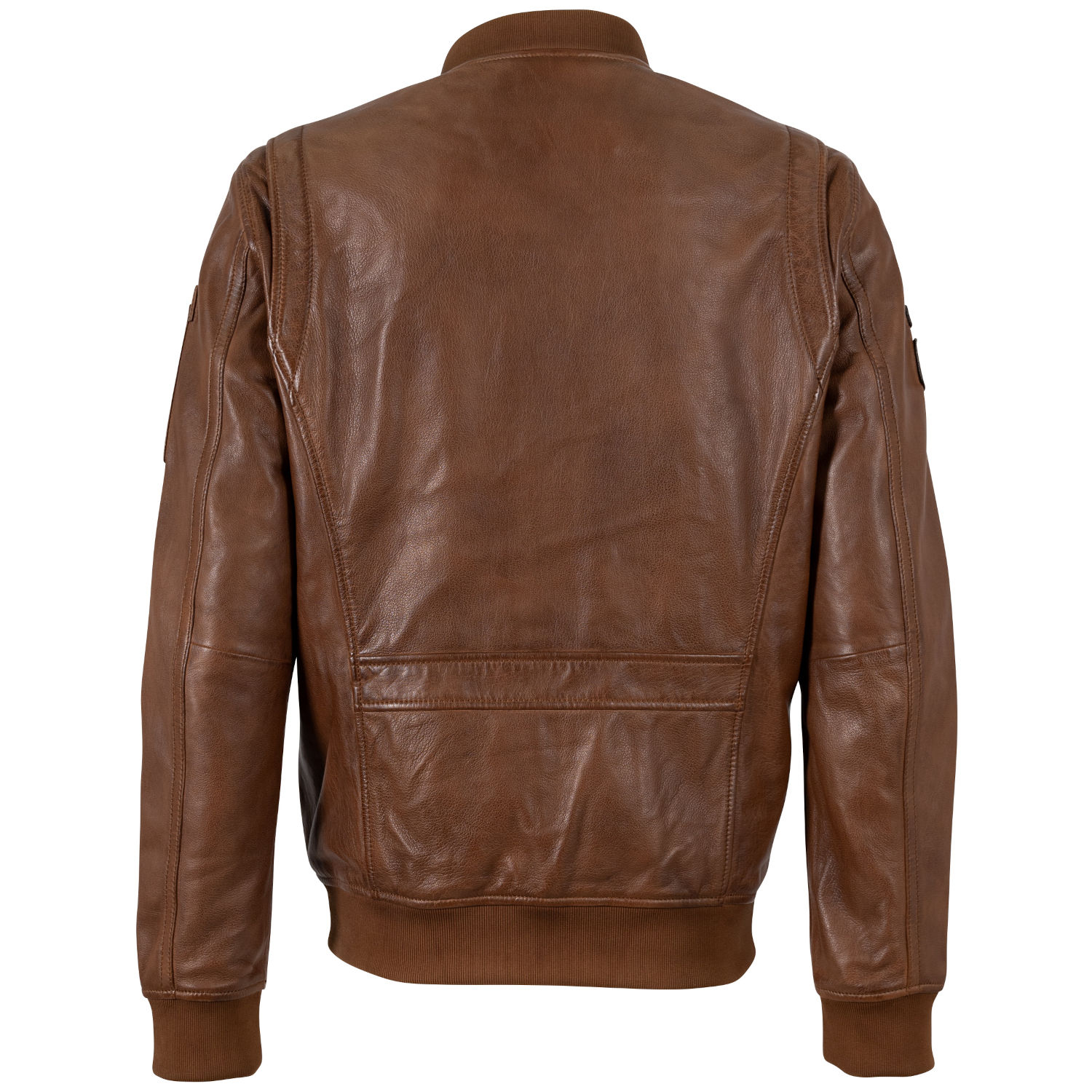 Tonul cald al pielii evidențiază linia bomber și detaliile specifice stilului aviator, păstrând echilibrul între inspirația istorică și garderoba masculină modernă. Este o piesă care atrage prin culoare și proporție, dar rămâne ușor de integrat în ținute casual sau smart-casual.