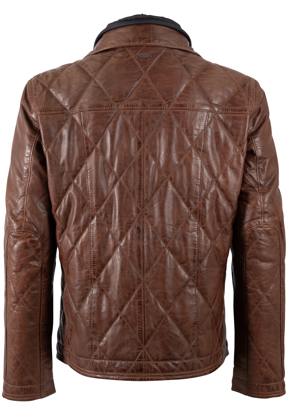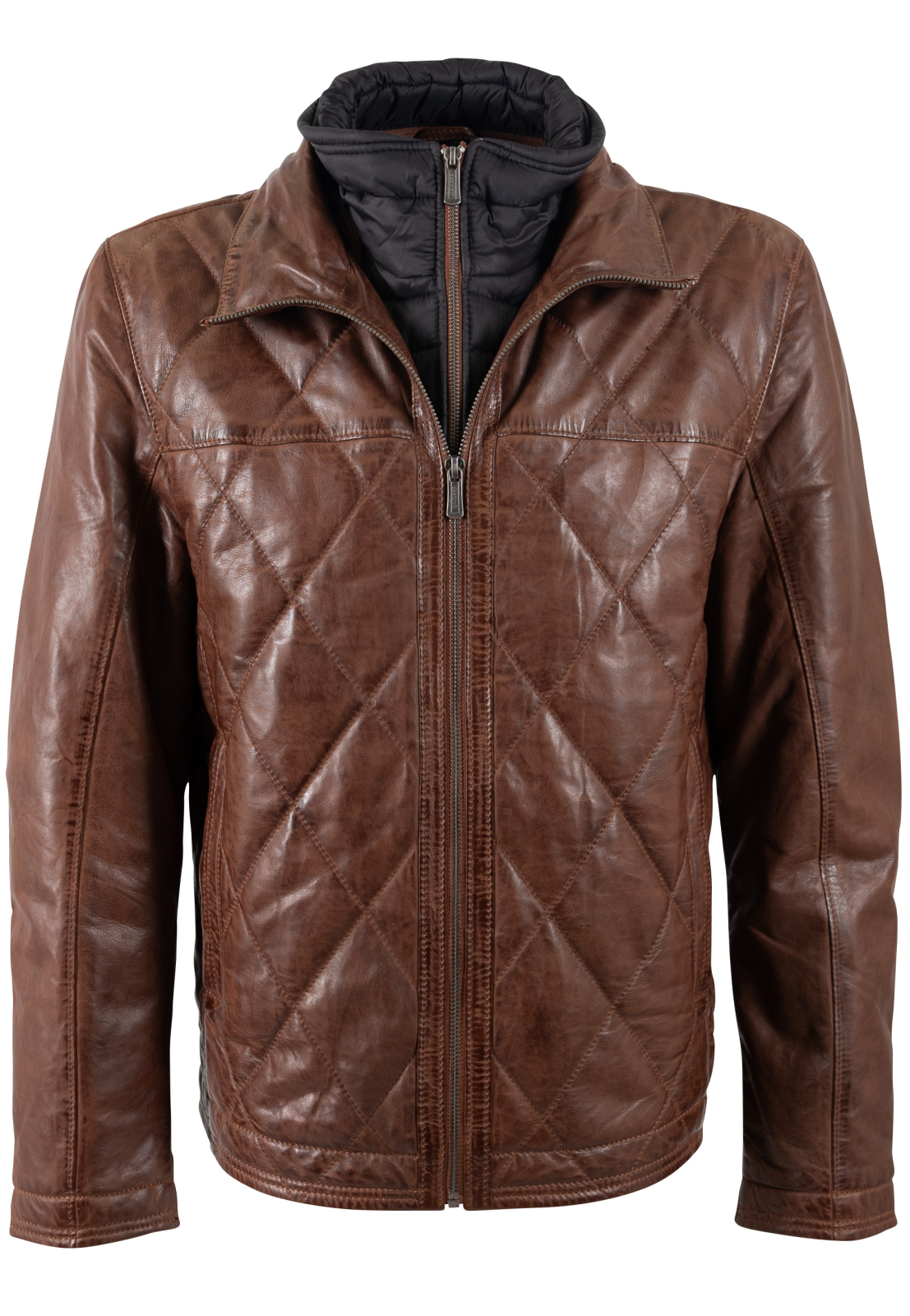 Jacheta din piele, eleganta cu design matlasat discret, in croiala larga confortabila