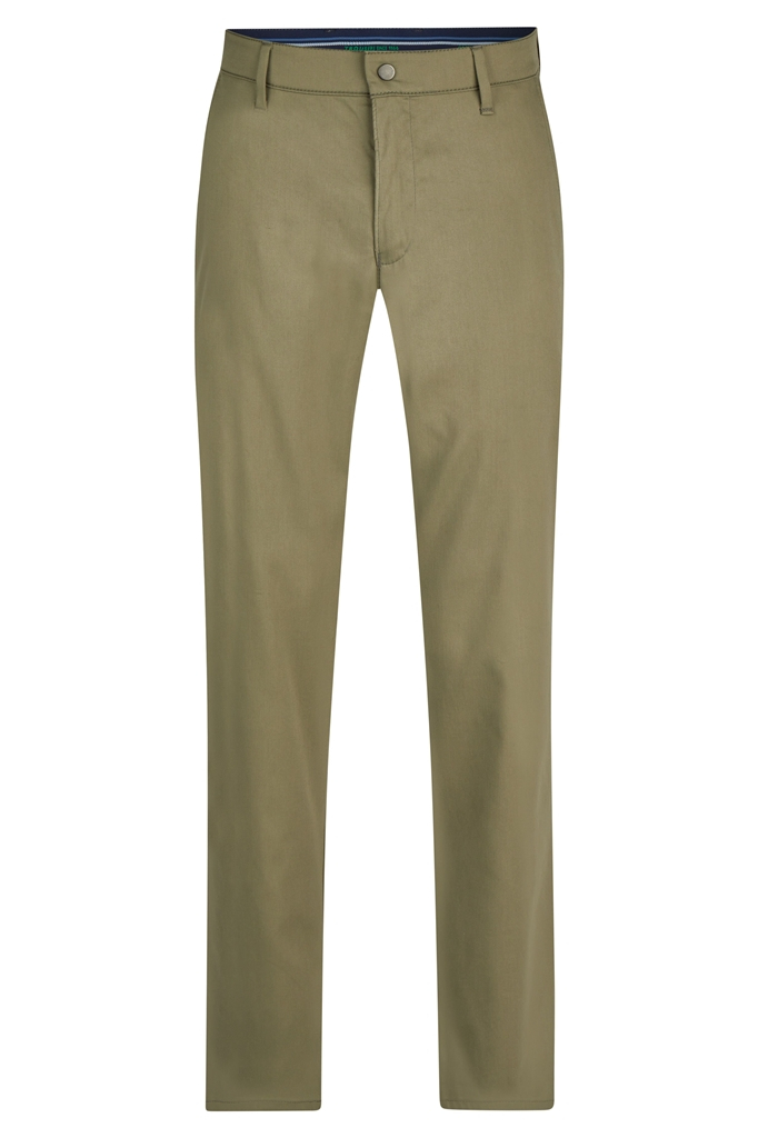 Pantaloni chino confortabili, cu croială conică, cu talie elastică confortabilă și stopper pentru cămașă. Fabricați dintr-un material inovator de bumbac tehnic, foarte elastic, cu un aspect curat.
